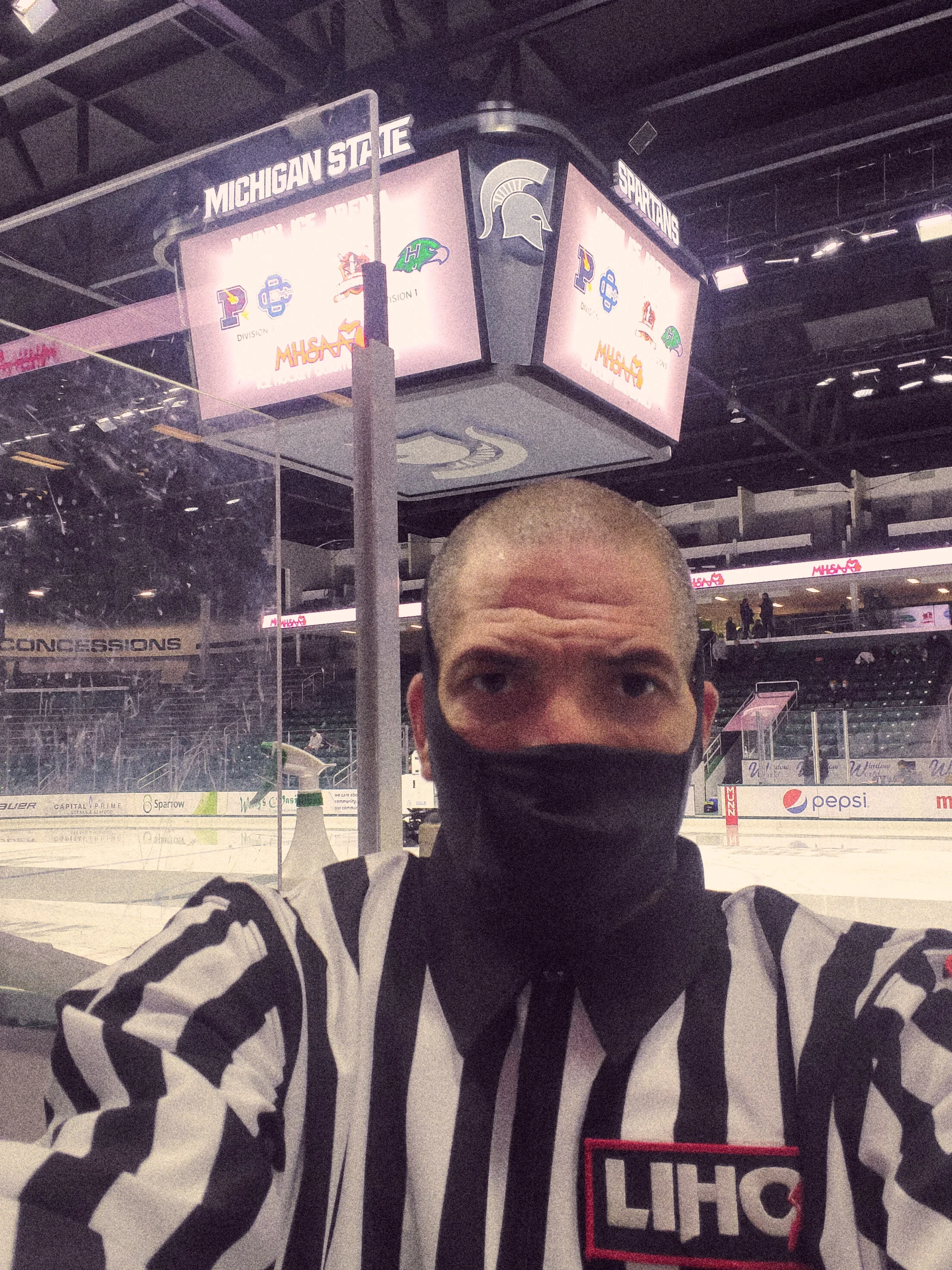 I have been an on-ice official since 1986 and was about to start my 34th season, this time wearing a mask. It was incredibly confining and difficult at first. I truly questioned myself as to whether it was worth it. Games were frequently cancelled due to an outbreak amongst a team or school. It was certainly the most interesting season of my career.